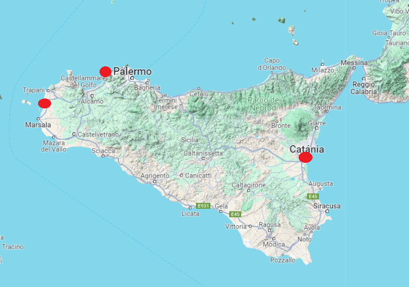 Sicily can be reached by plane through one of the 3 airports. (Palermo, Trapani/Birgi, Catania).