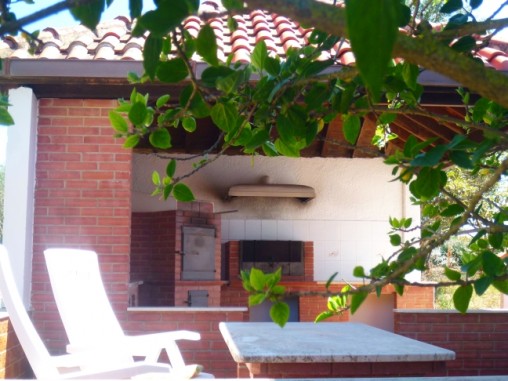 Buiten hebben we een groot overdekt terras. Perfect voor een ontbijt in de ochtend en een perfecte plek om in de schaduw een boek te lezen. We hebben ook een buitenkeuken met spoelbak, BBQ en een pizza-houtoven.
